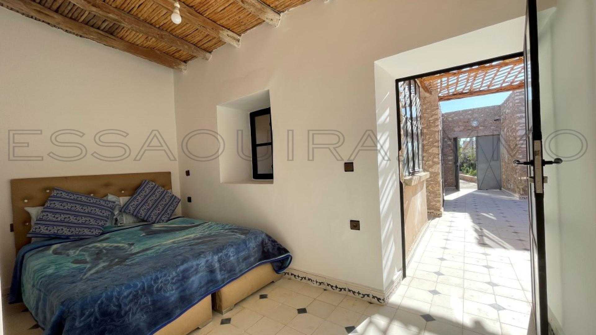 Située au cœur d’un petit village paisible à seulement 10 km d’Essaouira, sur la route de Safi, cette maison de plain-pied en pierre offre un cadre de vie authentique. mêlant charme traditionnel et confort du quotidien