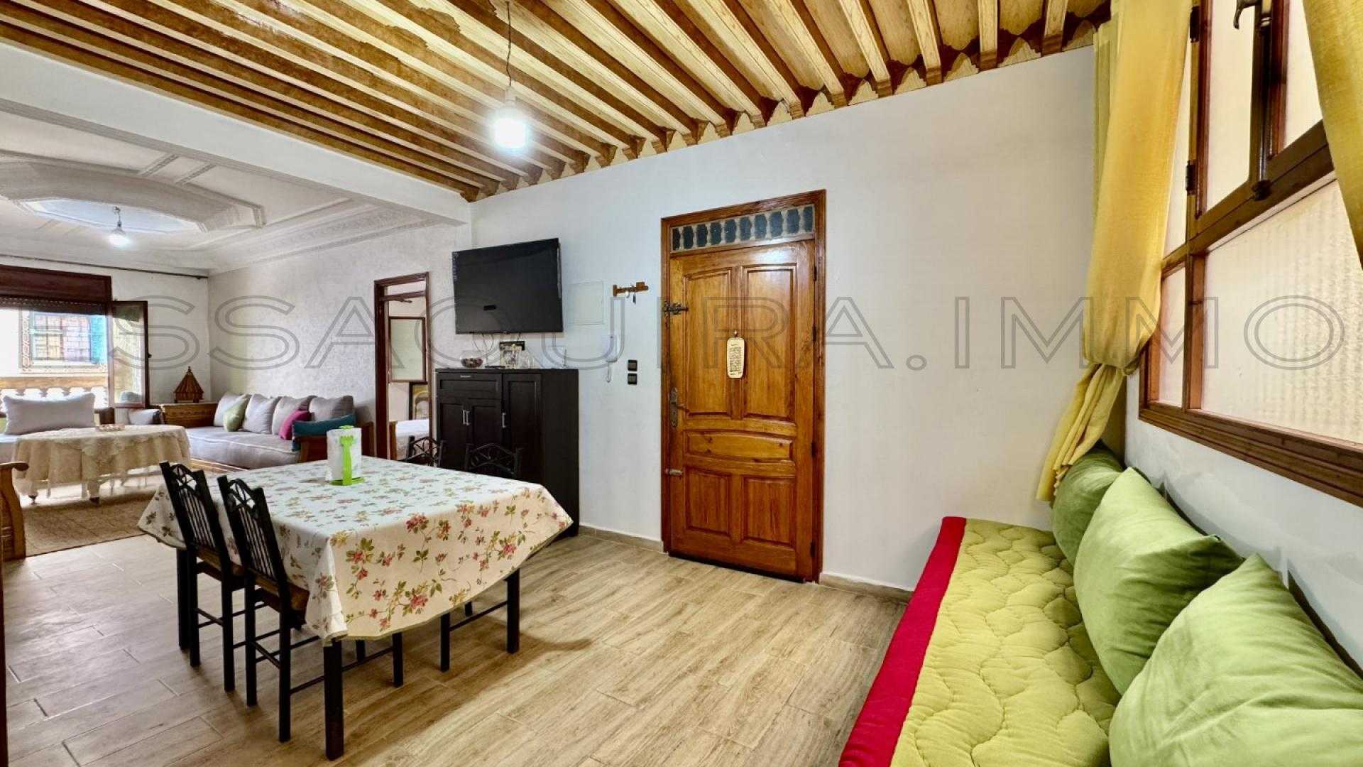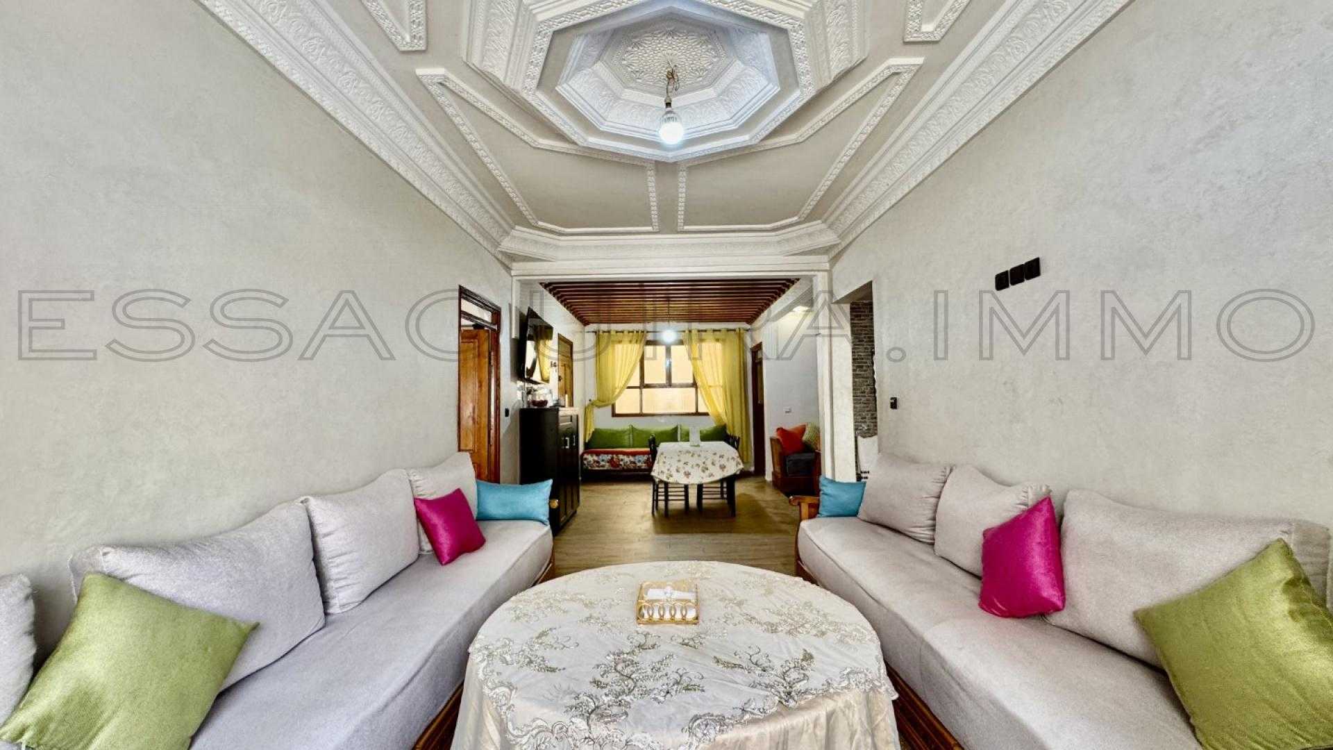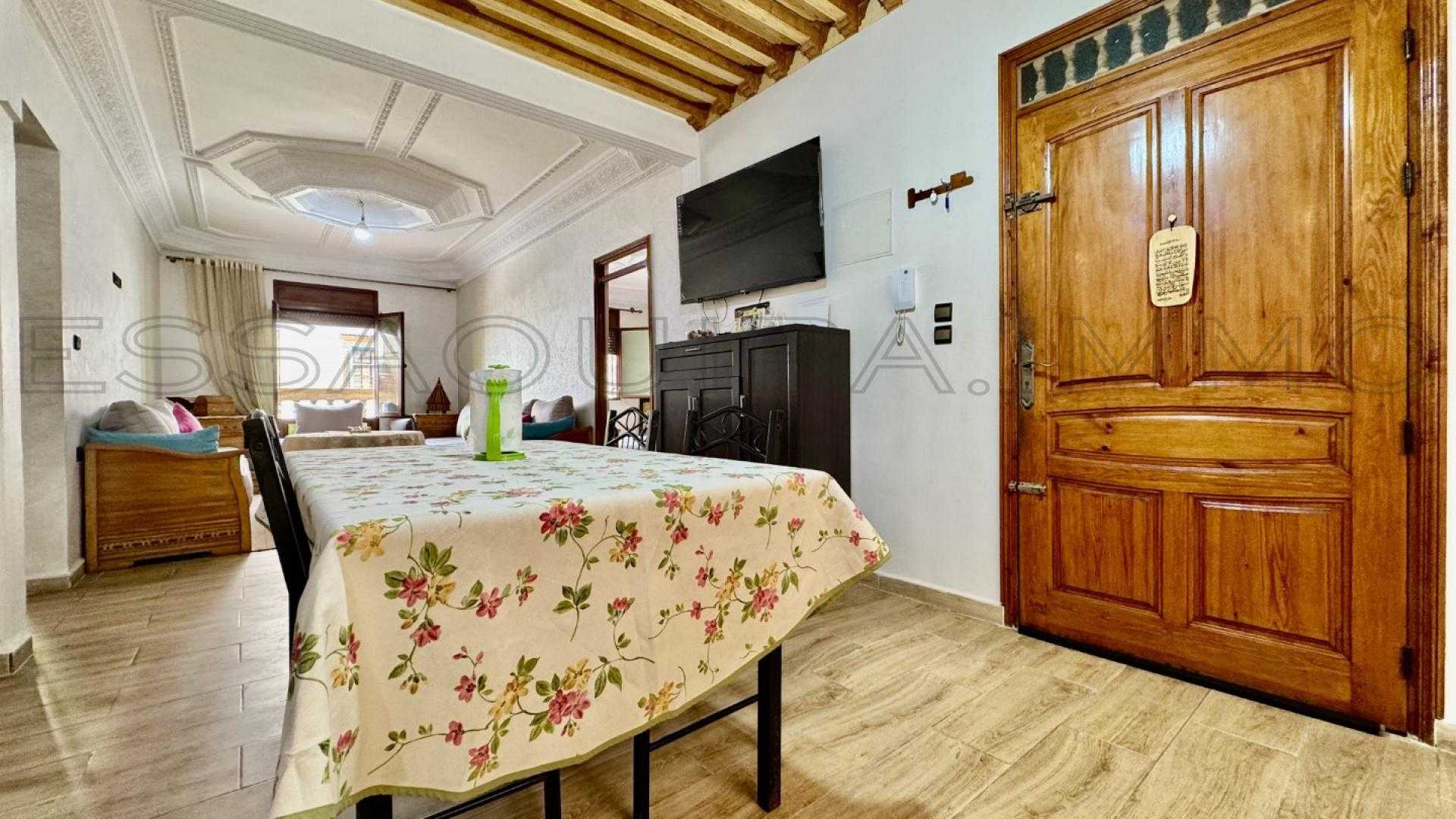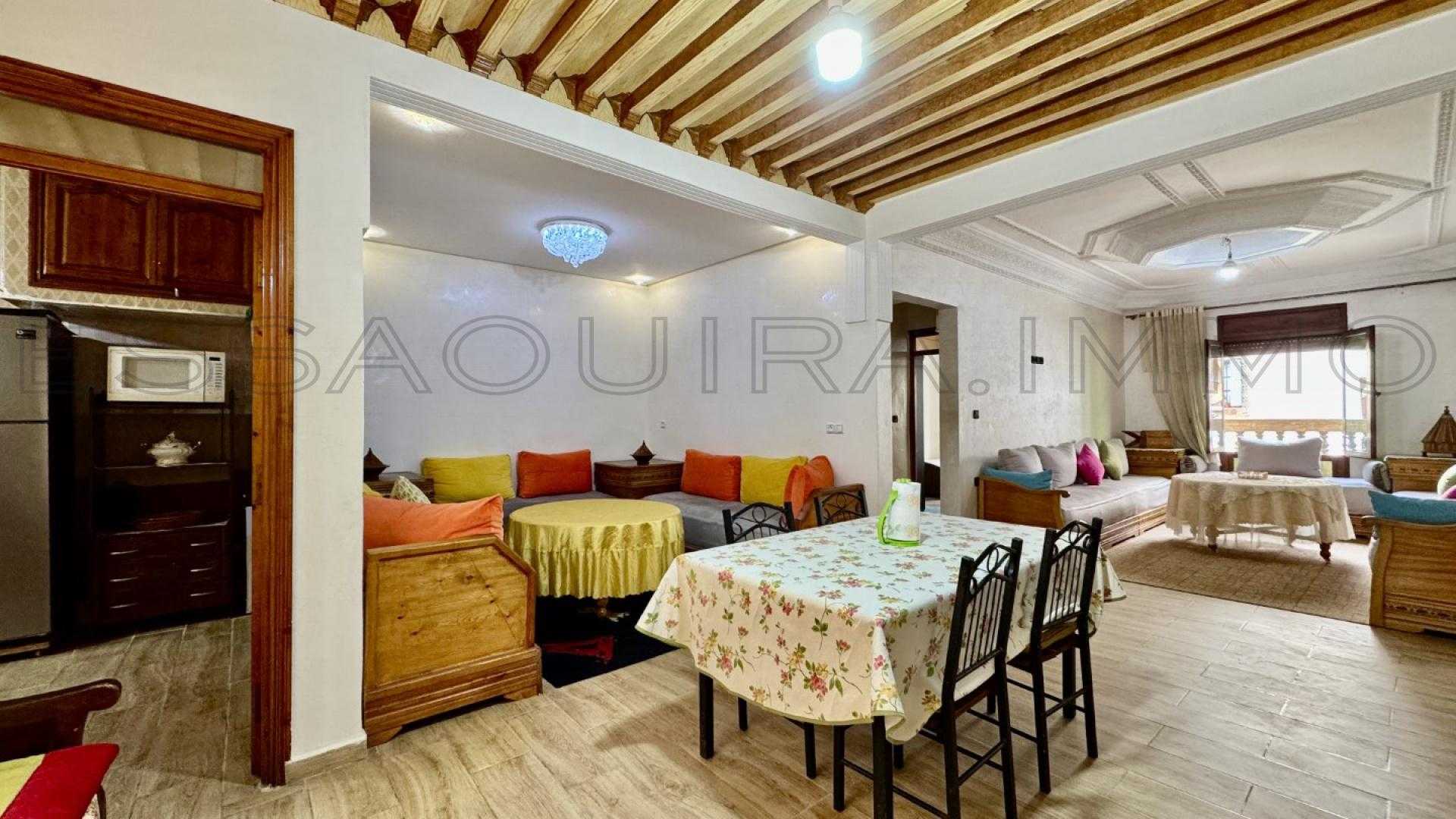 Situé dans le secteur recherché d’Errawnak, à seulement deux pas du supermarché Carrefour, ce bel appartement meublé de 100 m² se trouve au 1er étage d’un immeuble propre et calme.