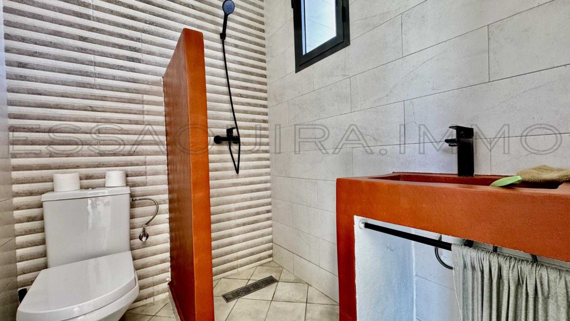 Située à Ghazoua, à seulement 8 km d’Essaouira, dans un secteur très recherché, cette élégante villa de plain-pied offre un cadre de vie moderne, lumineux et paisible.