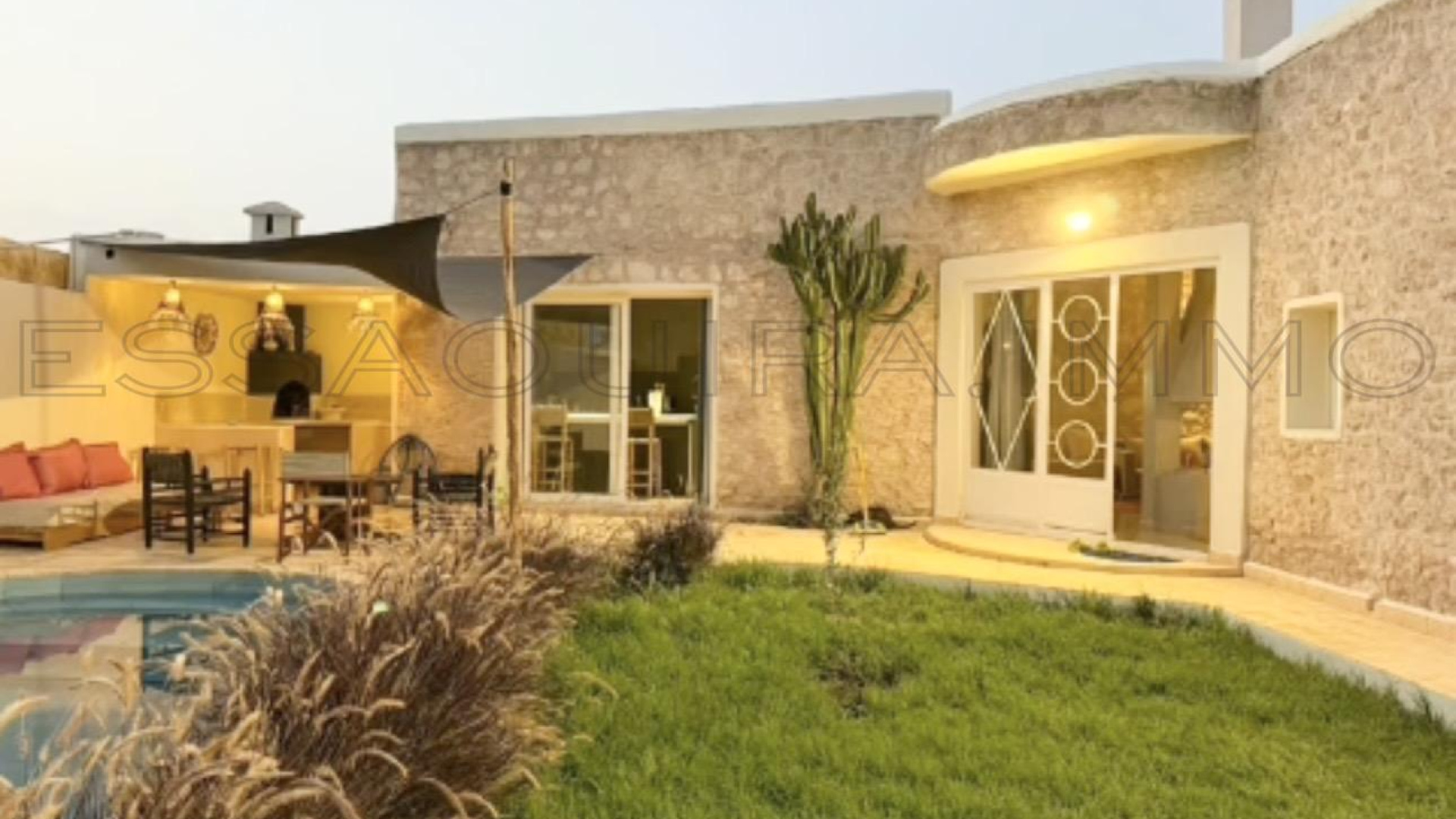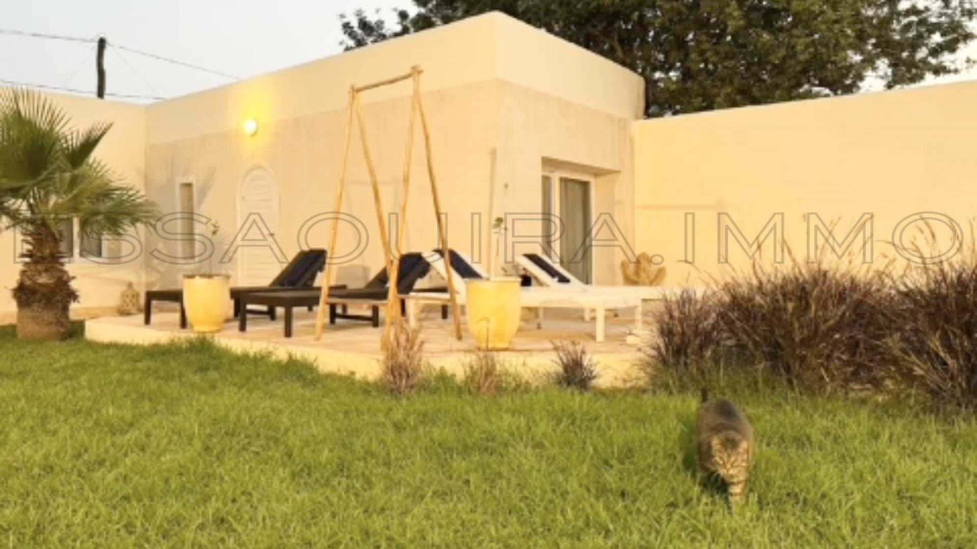 Située aux portes d’Essaouira, en zone urbaine accessible aux étrangers (sans AVNA) et dans un secteur très recherché à seulement 7 km du centre, cette splendide villa contemporaine de plain-pied offre un environnement paisible, sans vis-à-vis, à moins de 100 mètres d’une piste parfaitement accessible.