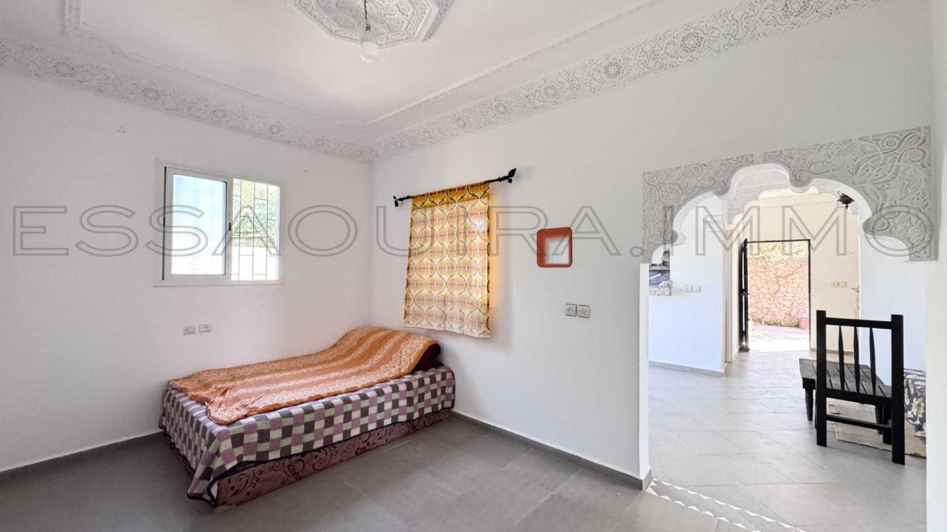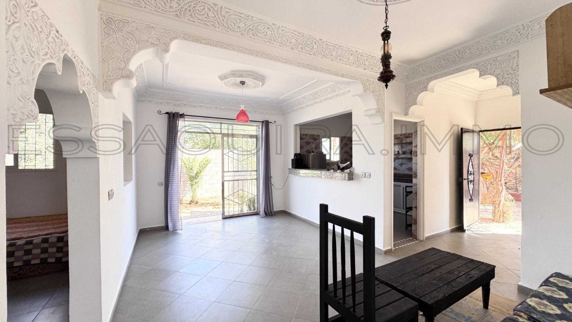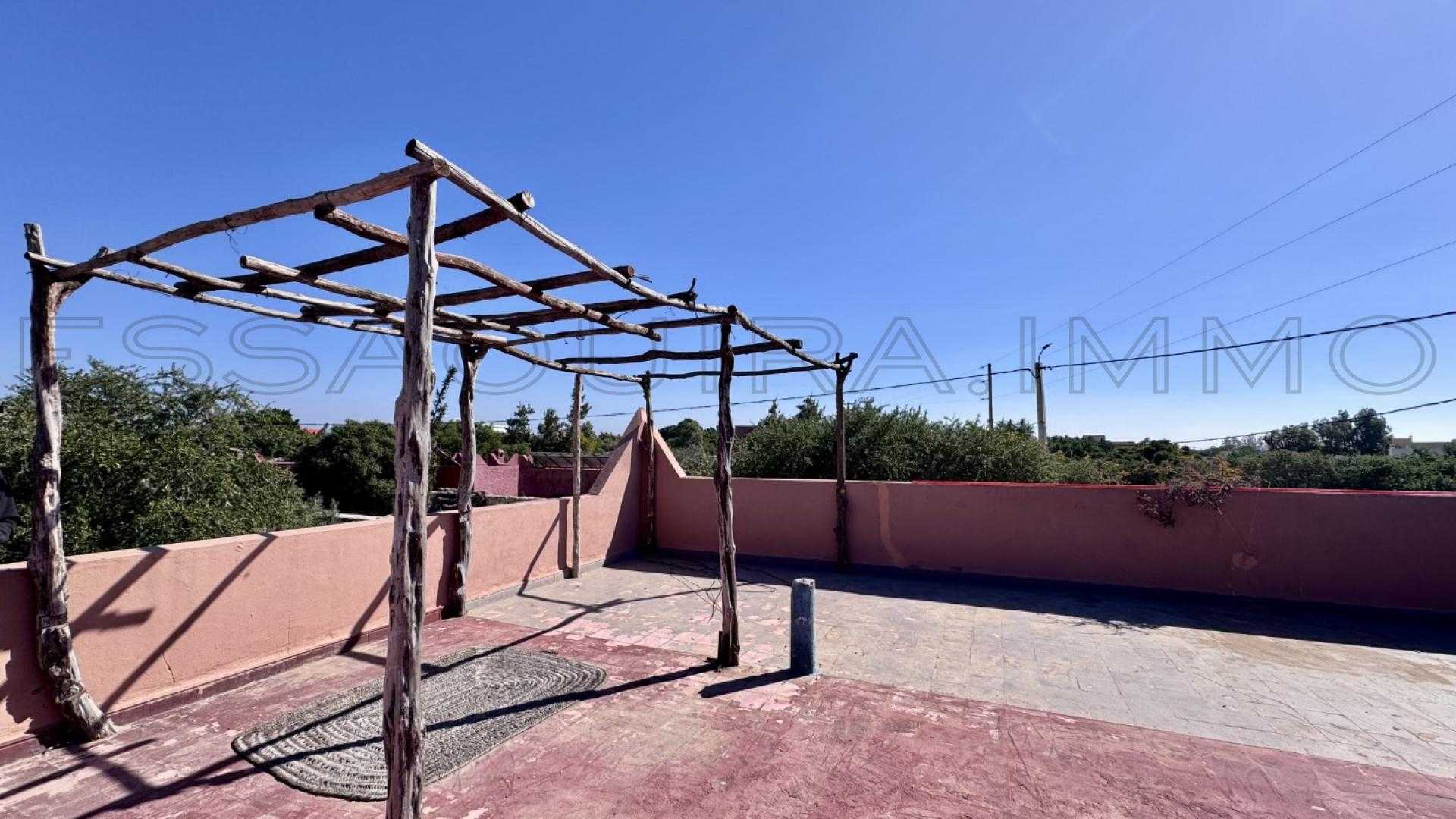 Située à Ghazoua, à seulement 8 km d’Essaouira, cette maison lumineuse bénéficie d’une belle clarté naturelle tout au long de la journée et d’un environnement calme, parfait pour une vie confortable à l’année.