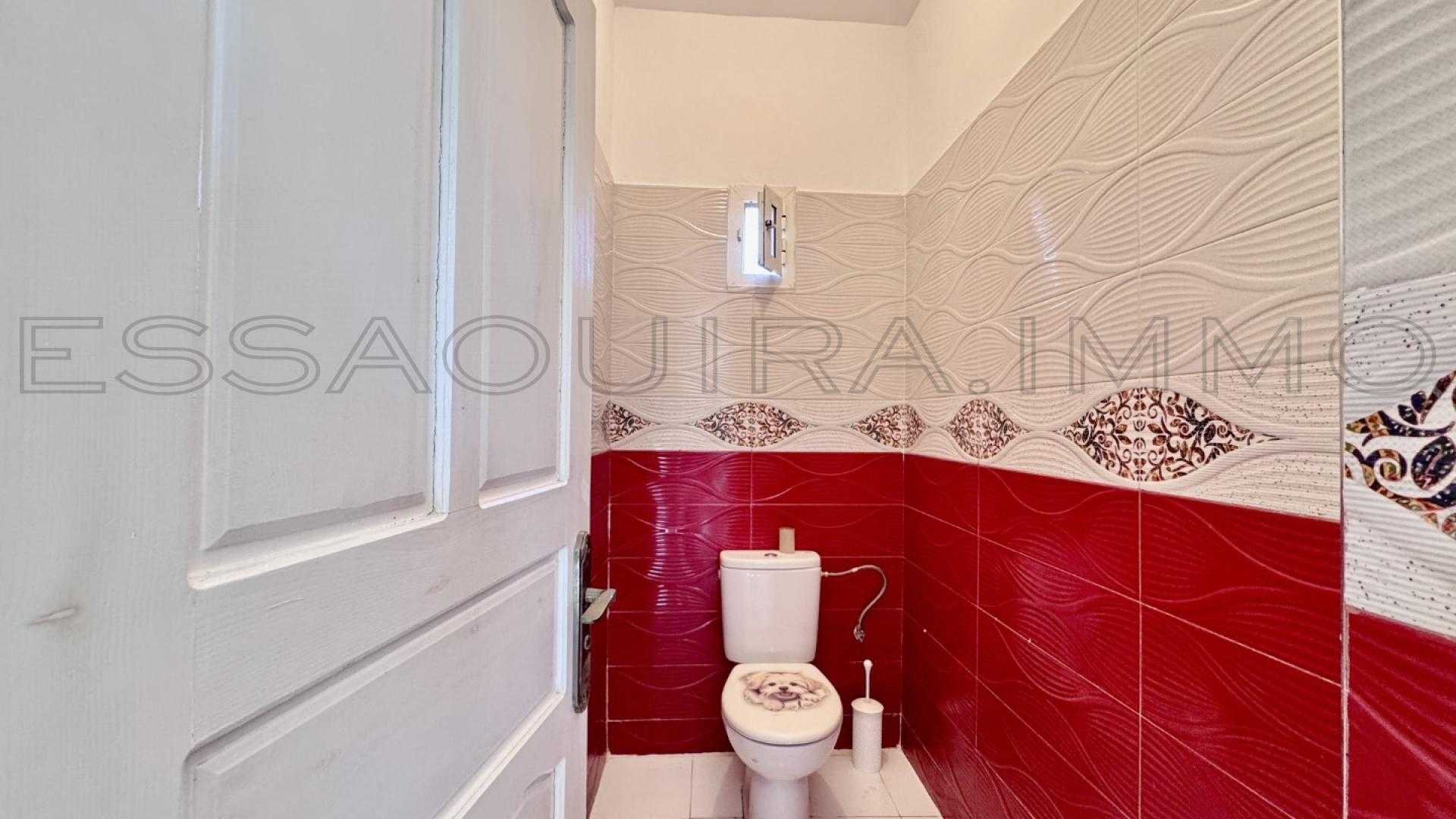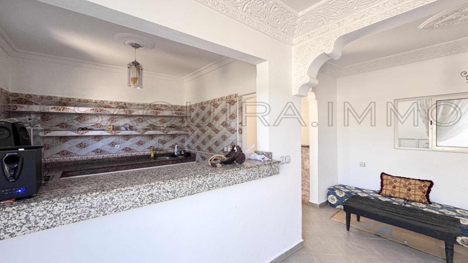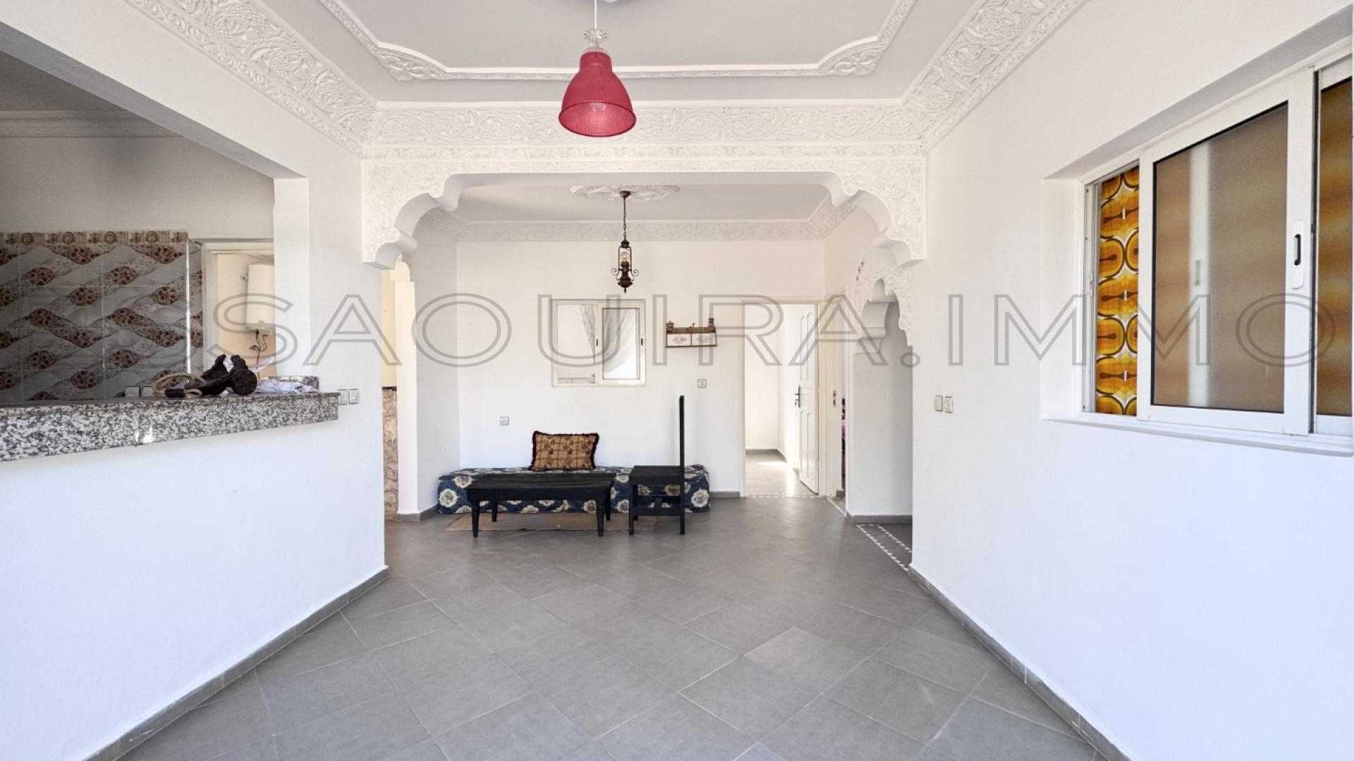 Située à Ghazoua, à seulement 8 km d’Essaouira, cette maison lumineuse bénéficie d’une belle clarté naturelle tout au long de la journée et d’un environnement calme, parfait pour une vie confortable à l’année.