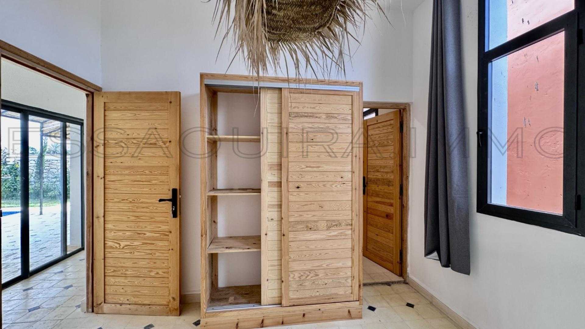 À seulement 10 km d’Essaouira et 4 km de Ghazoua, cette élégante villa de plain-pied séduit par sa luminosité naturelle, ses larges baies vitrées et ses matériaux nobles soigneusement sélectionnés. Un cadre paisible, verdoyant et idéal pour une vie confortable toute l’année.
