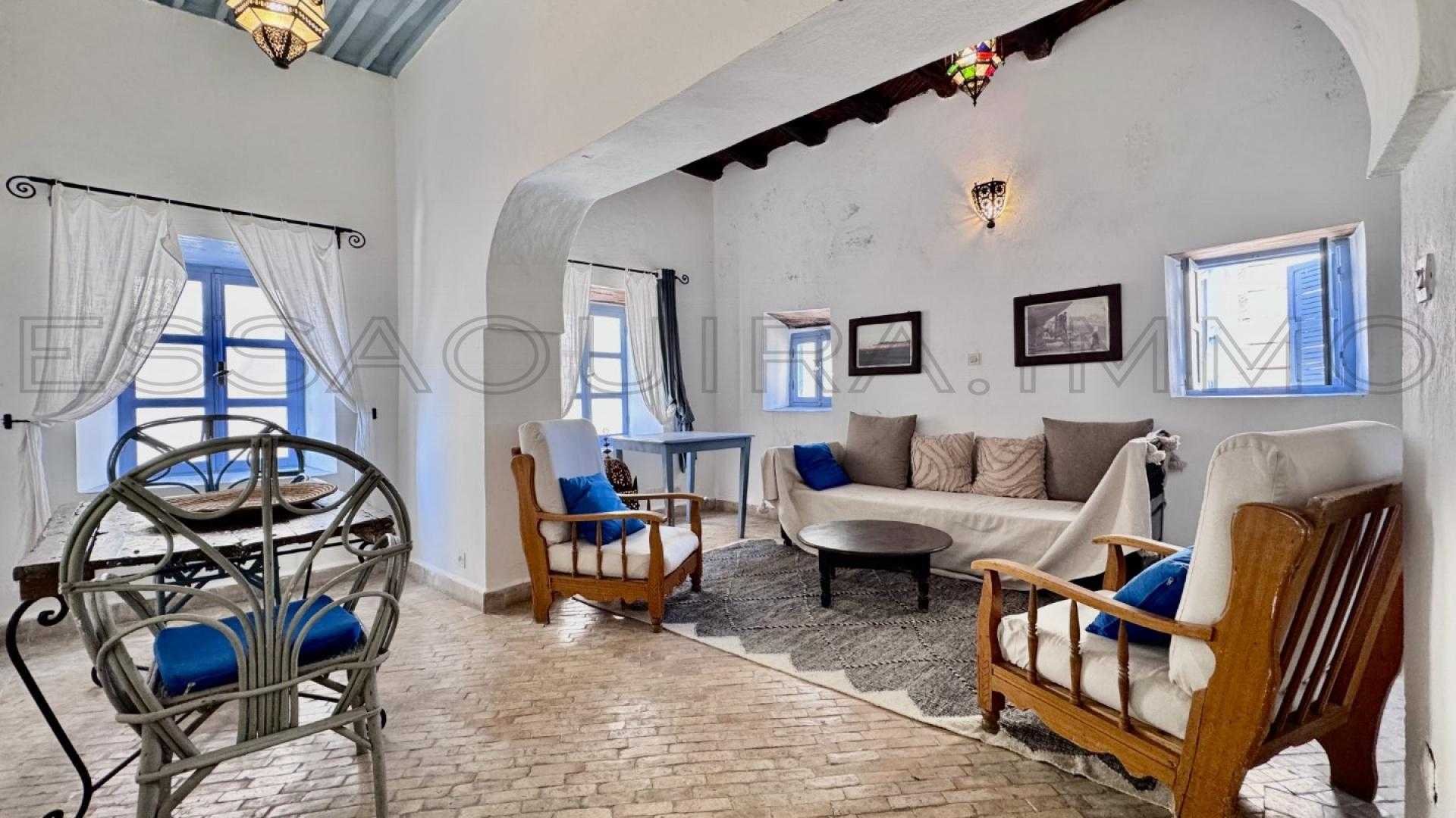 Situé au 1er étage d’un petit immeuble authentique ne comprenant que deux appartements, au cœur de la médina d’Essaouira, ce bien rare bénéficie d’un emplacement privilégié dans une ruelle calme, à proximité immédiate des souks et des commerces.